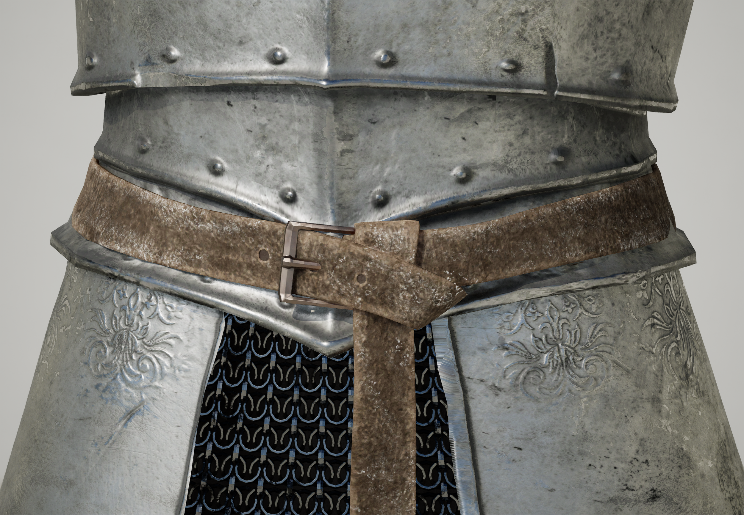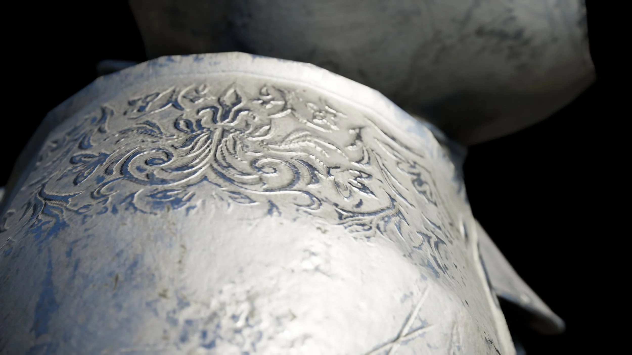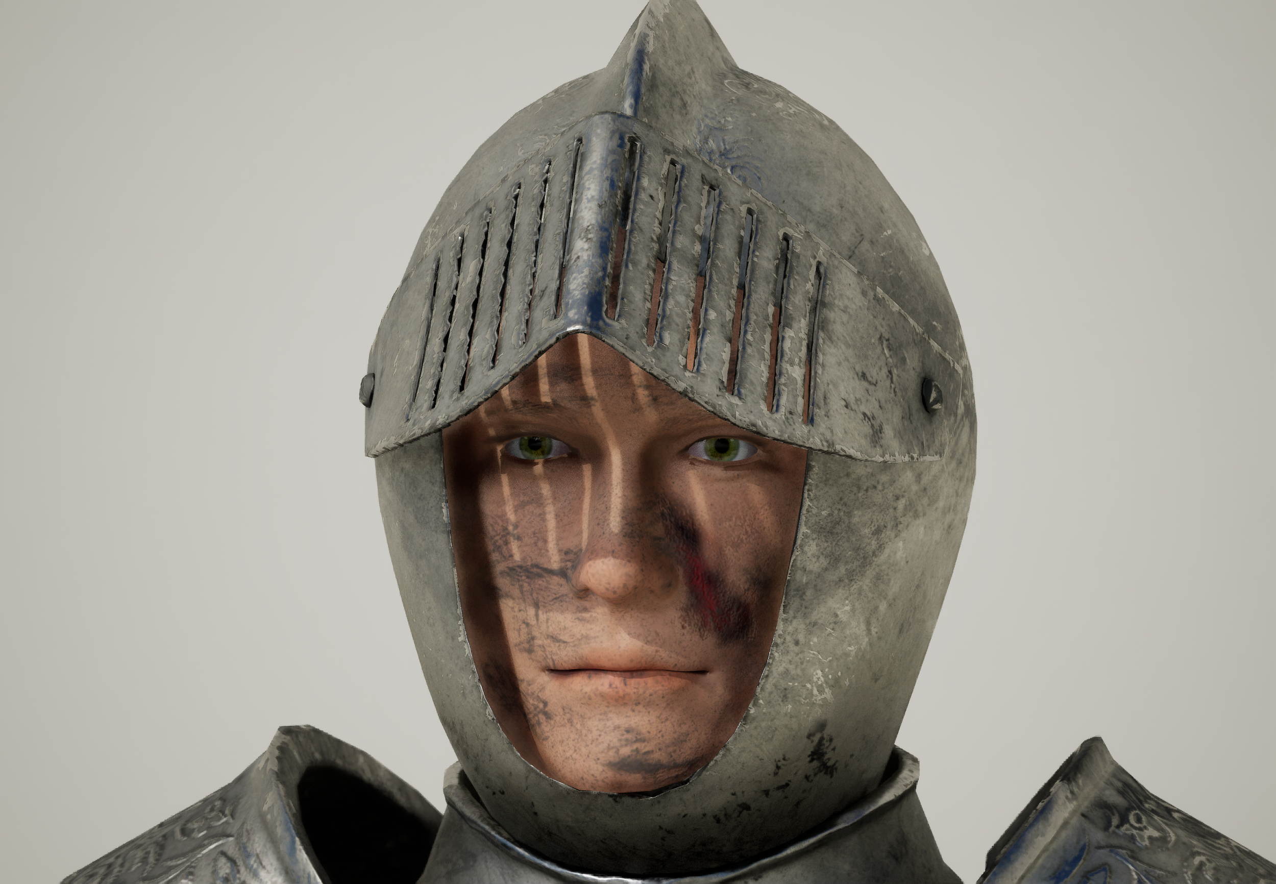 I drew inspiration from authentic knight armor, artwork from the medieval period, and concept arts by modern artists, which allowed me to design armor that not only captures the essence of the era but also reflects our independent artistic vision. We added many scratches and weathered marks onto the armor when sculpting in ZBrush to create the worn effect. When it comes to texturing, we added burn marks and wounds to the face for better storytelling.